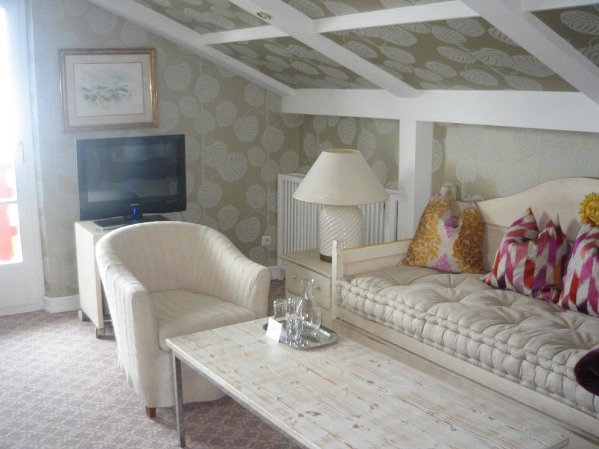 Номер с гостиным уголком и спутниковым телевидением. К услугам гостей кровать шириной 140 см