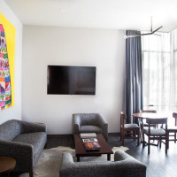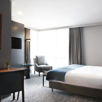 Люкс с 1 кроватью размера «king-size». Собственная ванная комната с гидромассажной ванной укомплектована бесплатными туалетно-косметическими принадлежностями. В числе удобств — телевизор с плоским экраном и кабельными каналами, мини-бар, электрический чайник, сейф, а также кондиционер и обогреватель. Предоставляются полотенца и постельное белье