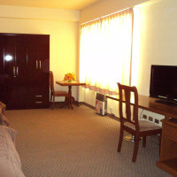 Номер с 1 двуспальной кроватью. Из окон некоторых номеров открывается вид на город, из других - на сад