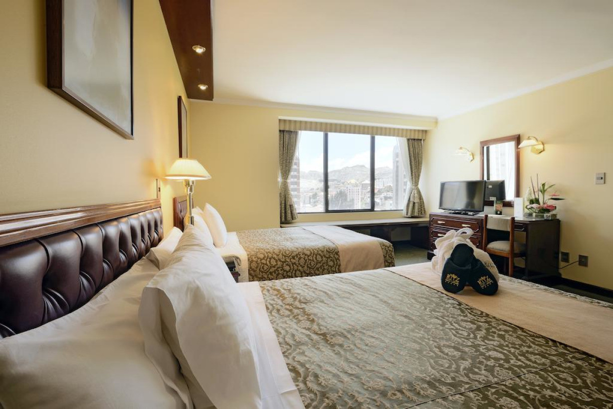 Просторный люкс с 2 спальнями. В одной из них в вашем распоряжении кровать размера "king-size" и ванная комната с гидромассажной ванной, а в другой - 2 односпальные кровати. Номер с хорошо оборудованной кухней, гостиной и столовой, а также балконом с живописным видом на Ла-Пас
