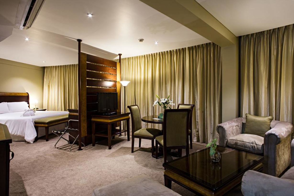 В этом люксе с панорамным видом на город установлена кровать размера "king-size", гидромассажная ванна и ЖК-телевизор с кабельными каналами, а также в нем можно пользоваться бесплатным Wi-Fi.