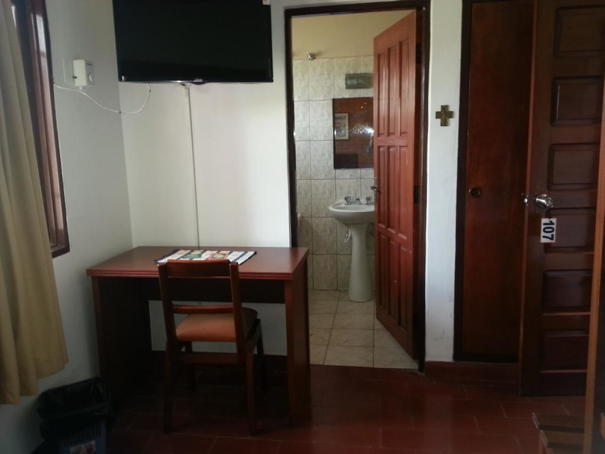 Отель Casa Kolping расположен в городе Санта-Крус-де-ла-Сьерра, в 3 км от центра города. К услугам гостей бесплатный WiFi и бизнес-центр на территории отеля.Номера с кафельным полом и кирпичными стенами обставлены деревянной мебелью. В распоряжении гостей собственная ванная комната, кондиционер и телевизор, а также полотенца и постельное белье.В отеле Casa Kolping к вашим услугам круглосуточная стойка регистрации, сад и прачечная.Отель находится в 3 км от площади 24 сентября главной площади города Санта-Крус-де-ла-Сьерра. Расстояние до международного аэропорта Виру-Виру составляет 17 км.