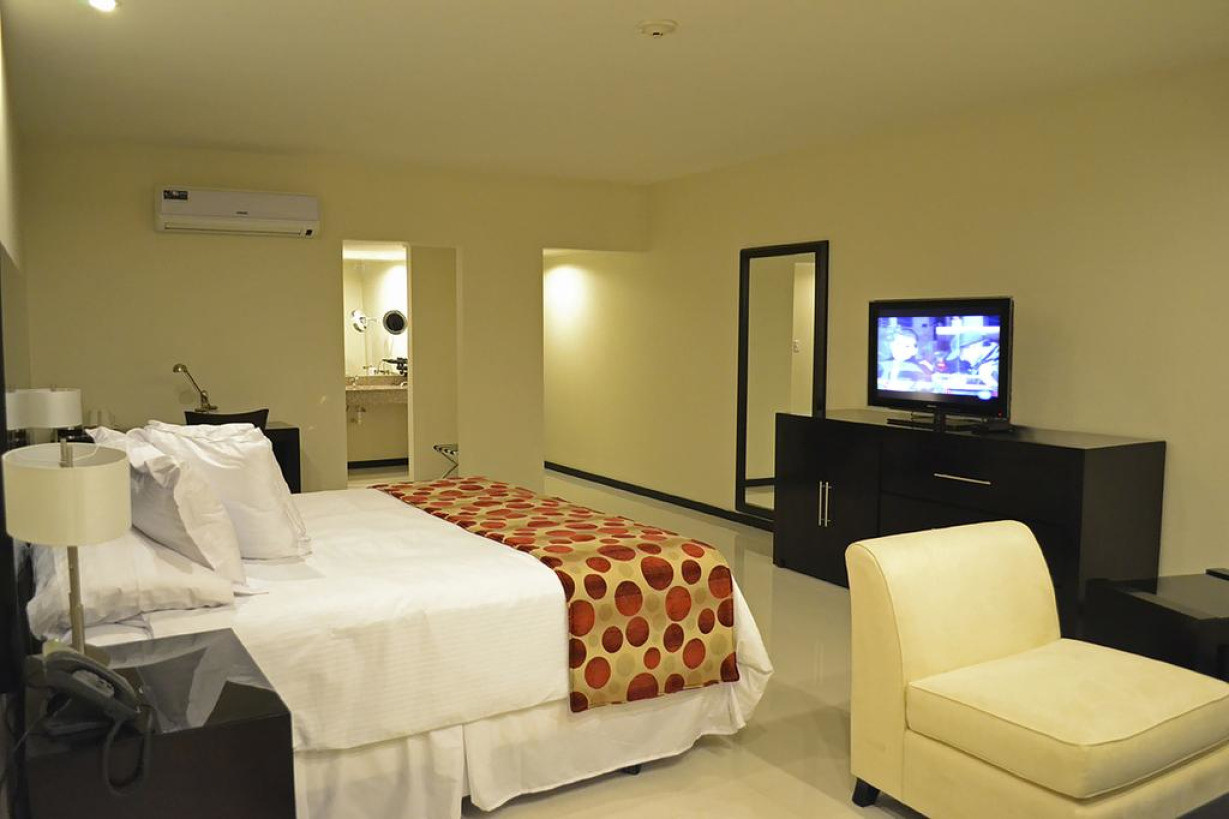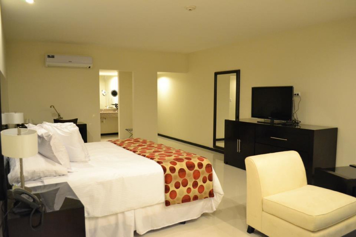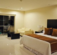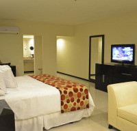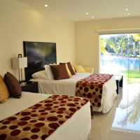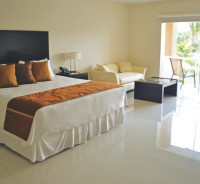 Меблированный номер-люкс оборудован двуспальной кроватью, собственной ванной комнатой, мини-баром, кондиционером и письменным столом. Из окон номера открывается великолепный вид на бассейн. Бронирование данного люкса позволяет ранний заезд и поздний выезд без дополнительной платы