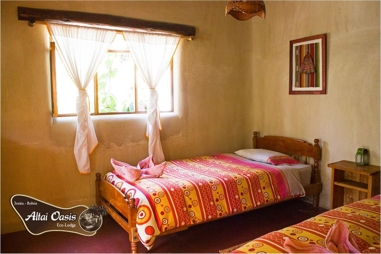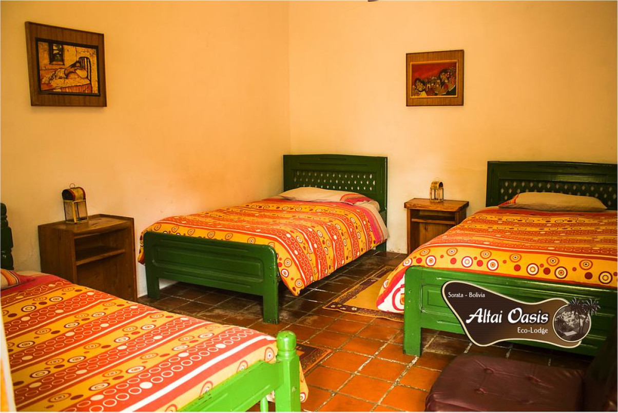 Комплекс Altai Oasis Eco Lodge с открытым бассейном и рестораном расположен в Сорате, теплой долине с великолепным видом, у подножия горы Ильямпу.В стоимость проживания входит американский завтрак и бесплатные туалетно-косметические принадлежности. В некоторых номерах есть собственная ванная комната.В распоряжении гостей эко-лоджа Altai Oasis сад, принадлежности для барбекю, терраса, общий лаундж, гамаки, сезонный открытый тренажерный зал и бесплатная парковка.Комплекс находится всего в 3 км от главной площади города Сората с ресторанами, магазинами и банками. Расстояние до водопадов на реке Сан-Кристобаль составляет 2 км, до автобусного вокзала Сората — 4 км, а до пещеры Сан-Педро — 10 км. Лодж находится в 24 км от горы Ильлампу и примерно в 3 часах езды от города Ла-Пас.