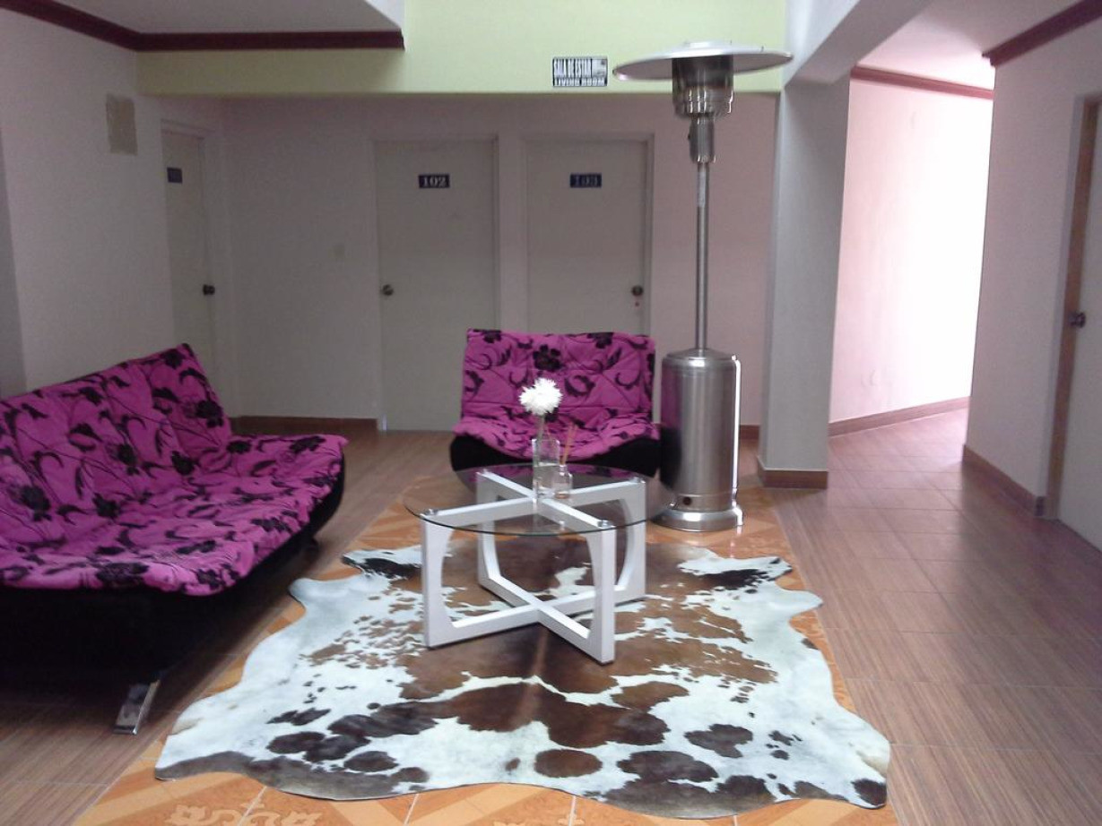 Трехместный номер с видом на город и полом, выложенным плиткой или мрамором. Имеется гостиная зона, собственная ванная комната и телевизор с кабельными каналами
