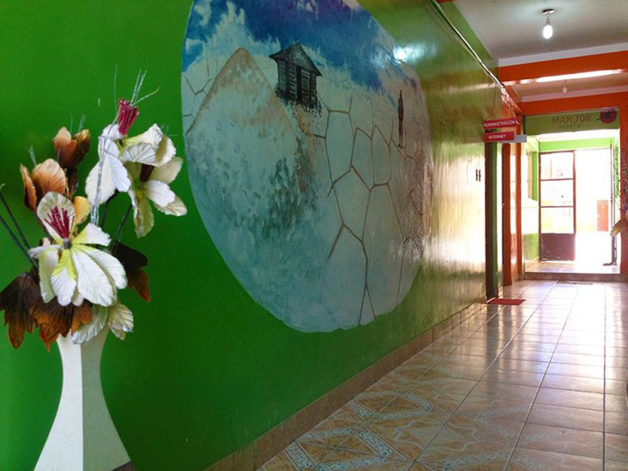 Гостевой дом Marjor расположен в центре города Уюни. К услугам гостей бесплатный Wi-Fi и бесплатный завтрак.В распоряжении гостей номера с общей или собственной ванной комнатой. Гостям предоставляется постельное белье.В числе удобств гостевого дома Marjor просторный внутренний двор и ежедневные услуги горничной.Гостевой дом находится в нескольких минутах ходьбы от нескольких ресторанов и магазинов. Поездка до аэропорта Хойя Андина занимает 10 минут, а расстояние до поселка Кольчани и входа на соляные лестницы составляет примерно 75 км.