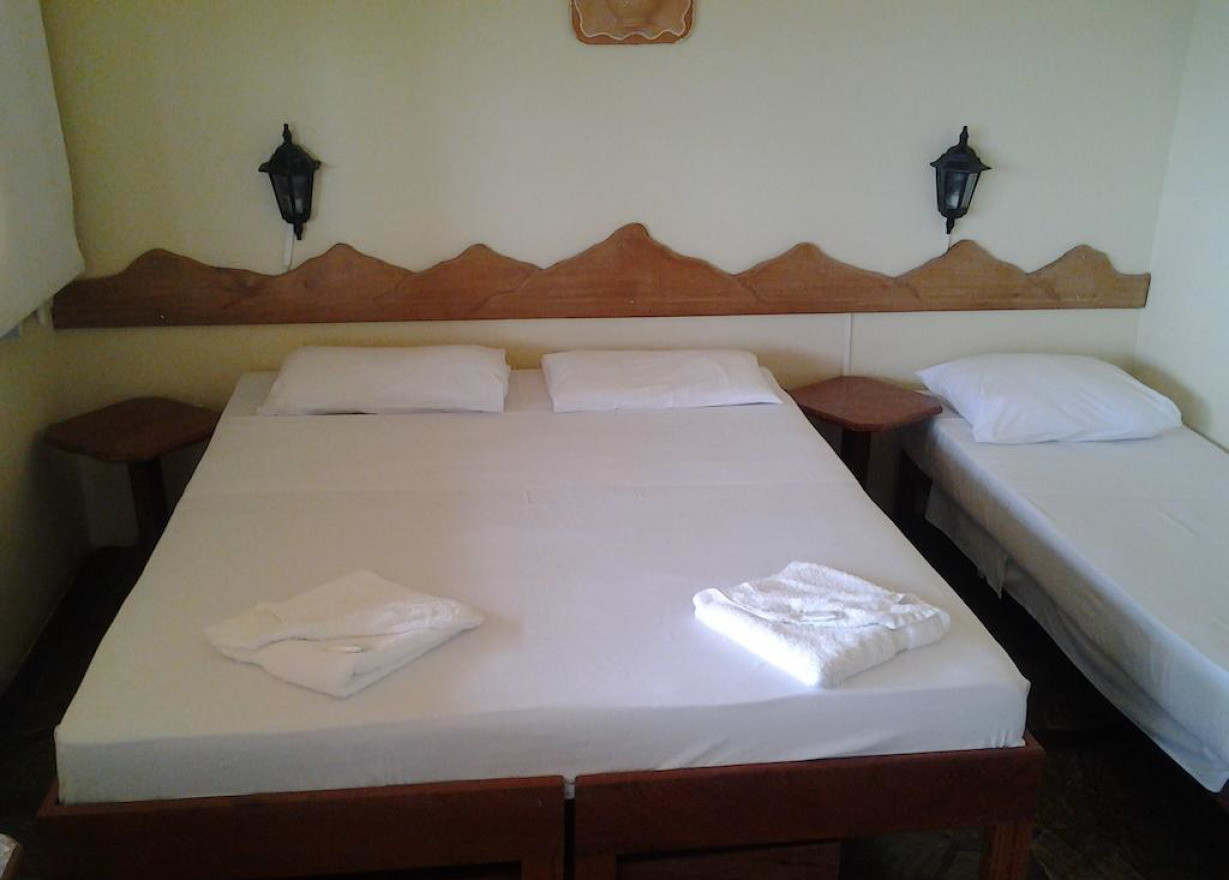 Трехместный номер с мини-баром. Пол в номере выложен плиткой или мрамором