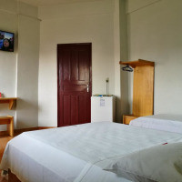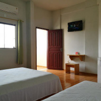 Трехместный номер с мини-баром и кондиционером. Пол выложен кафельной/мраморной плиткой