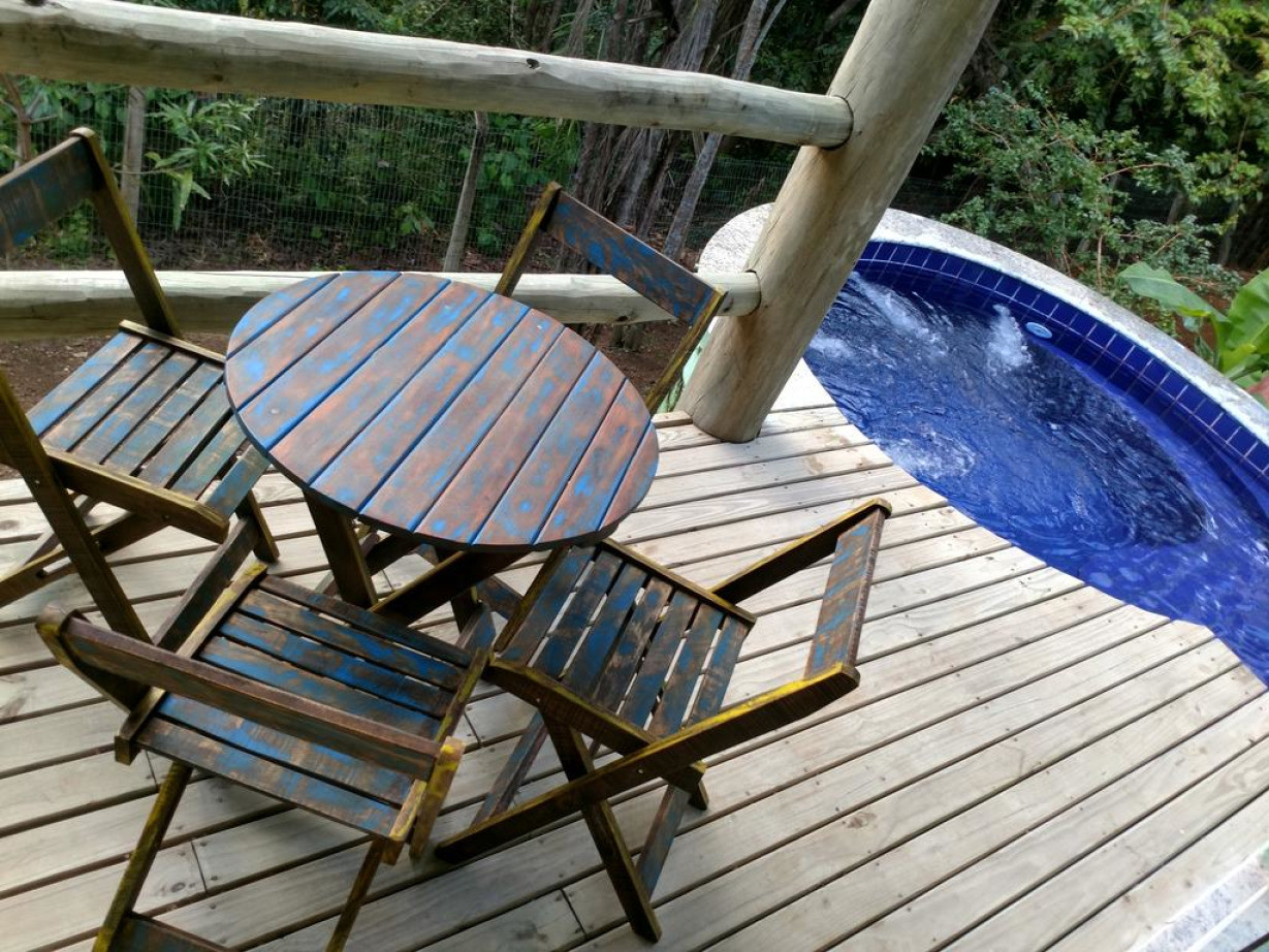 В этом бунгало имеются балкон с гидромассажной ванной и видом на лес, телевизор, DVD-плеер, кондиционер, полностью оборудованная кухня и собственная ванная комната с горячим душем