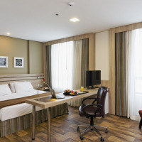 Двухместный номер с 1 кроватью оснащен кондиционером, мини-баром и телевизором со спутниковыми каналами. Номер этого типа может быть расположен на 9 – 14 этаже