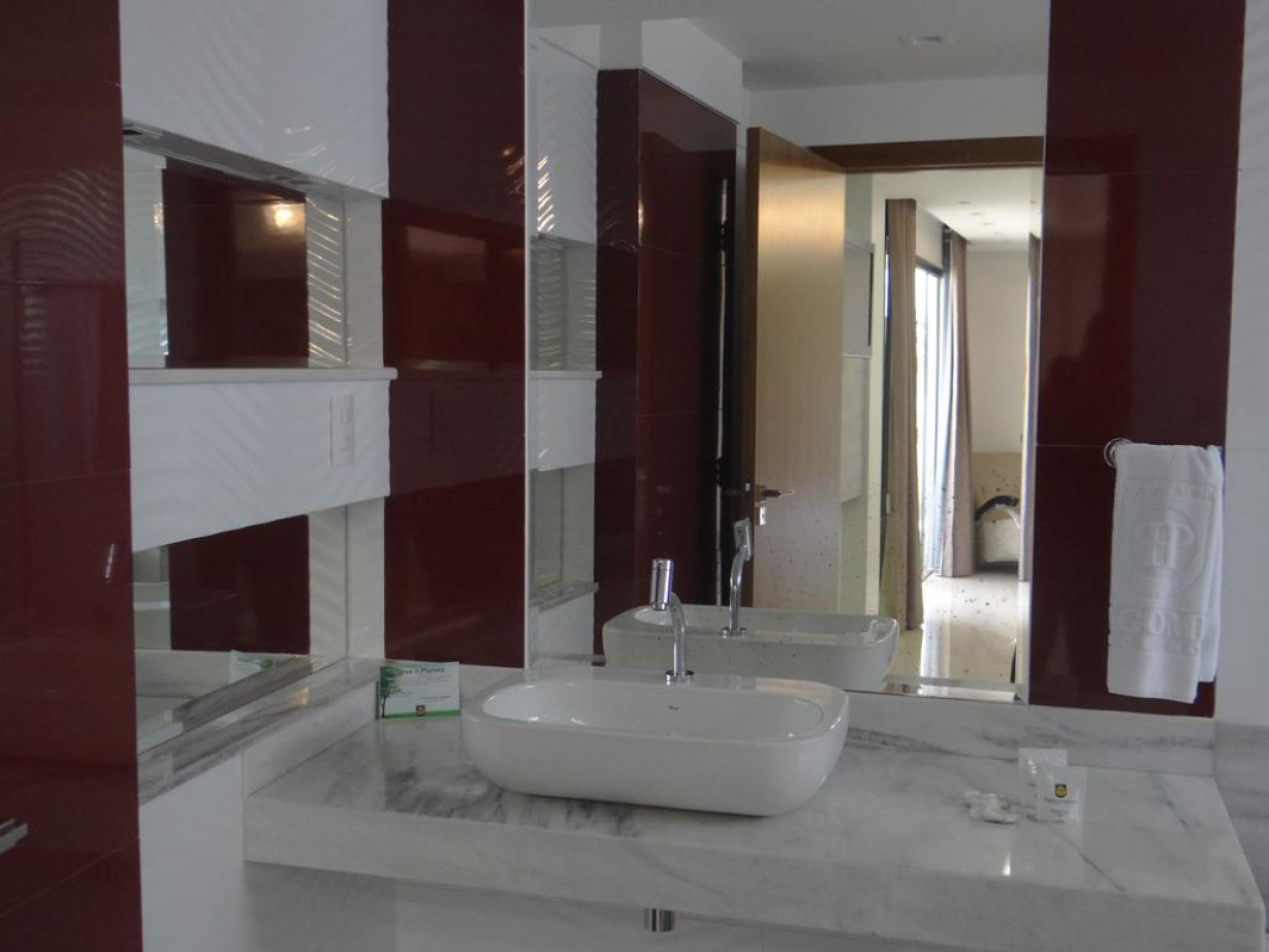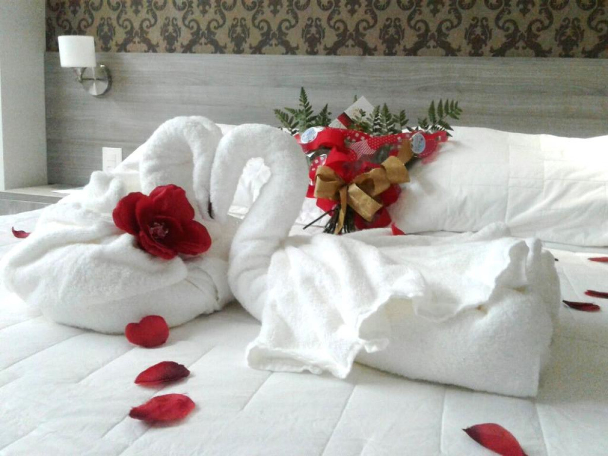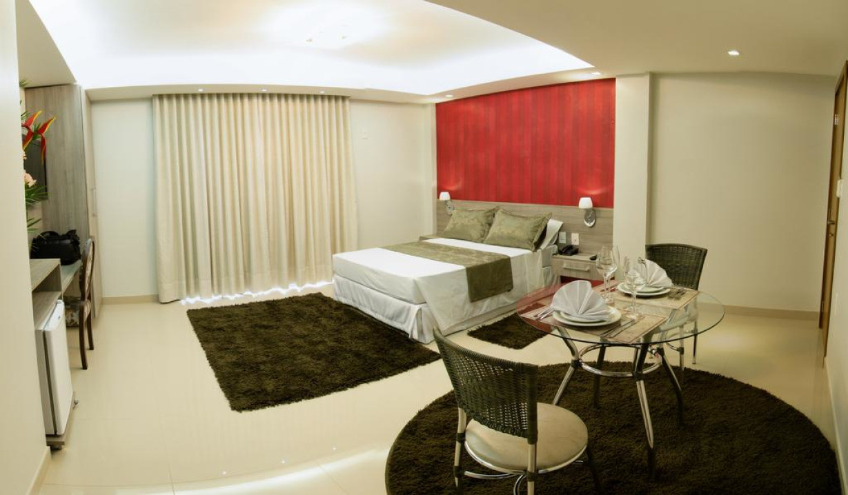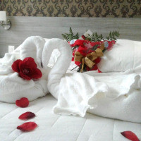 Номер с широкой двуспальной кроватью оснащен кондиционером, мини-баром и телевизором с плоским экраном. В числе удобств — гидромассажная ванна