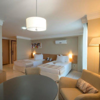 В этом люксе установлен кондиционер, ЖК-телевизор с плоским 26-дюймовым экраном, мини-бар, рабочий стол и электронный сейф. На территории работает бесплатный Wi-Fi. Гости могут в любое время суток заказать доставку еды и напитков в номер. В люксе бесплатно предоставляется бутылка воды и ежедневная газета. В номере данного типа возможна установка 1 двуспальной или 2 односпальных кроватей. Пожалуйста, сообщите администрации комплекса предпочитаемый тип кроватей до прибытия. Третий гость размещается на диване-кровати