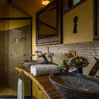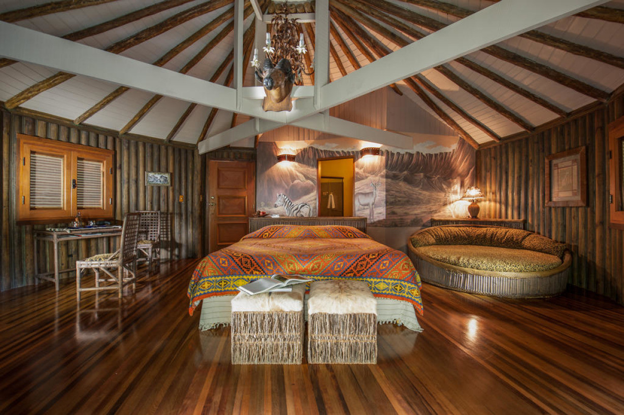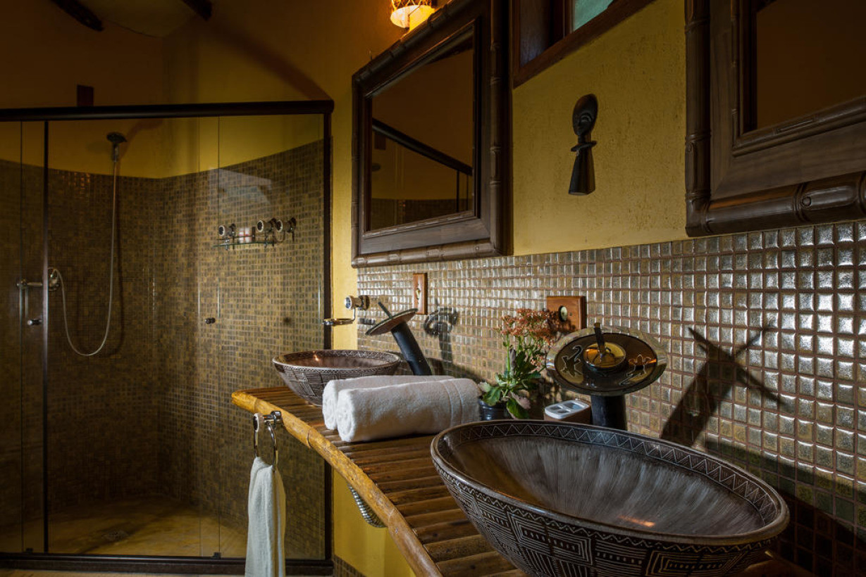Оформленный в африканском стиле номер располагает балконом с живописным видом на сад. К услугам гостей ЖК-телевизор, сейф и мини-бар. В собственной ванной комнате установлен душ