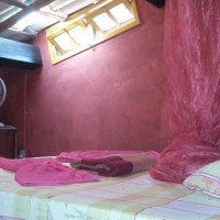 Красочный номер с кафельным полом, вентилятором и москитной сеткой. Номер является частью апартаментов с кухней, гостиной, общей ванной комнатой