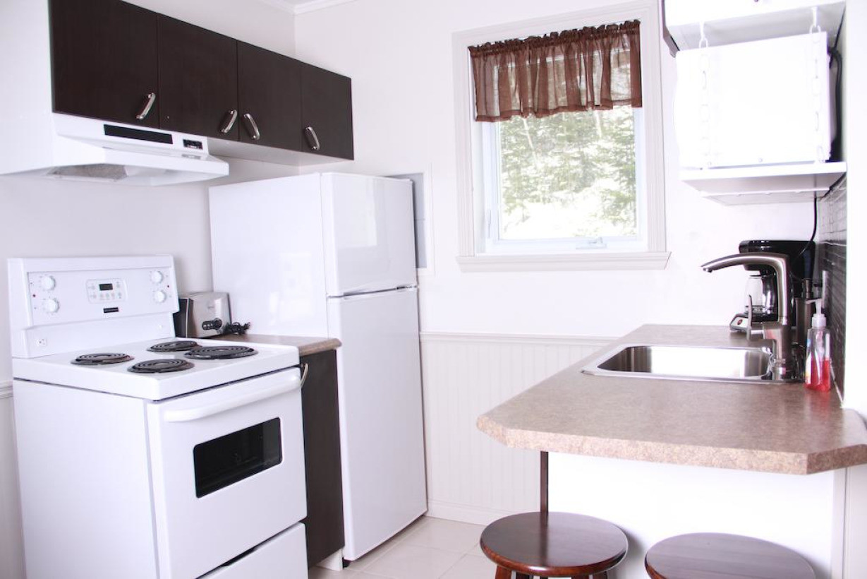 В шале к услугам гостей кухонные принадлежности, тостер и плита