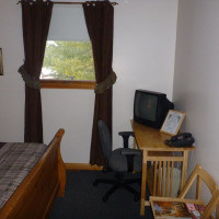 Номер в строгом стиле, гости могут пользоваться общей ванной комнатой. К услугам гостей телевизор со спутниковыми каналами и бесплатным Wi-Fi