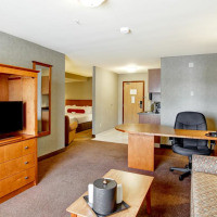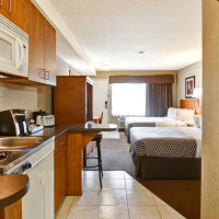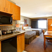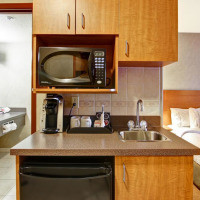 В номере имеется 39-дюймовый телевизор с плоским экраном и кабельными каналами, холодильник, микроволновая печь и принадлежности для чая/кофе. Также предоставляется фен и гладильные принадлежности
