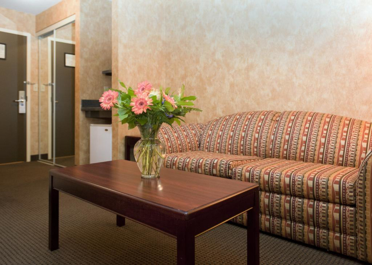 В этом люксе к вашим услугам отдельная спальня и гостиная зона, разделенные стеной. В вашем распоряжении микроволновая печь, кондиционер и диван-кровать