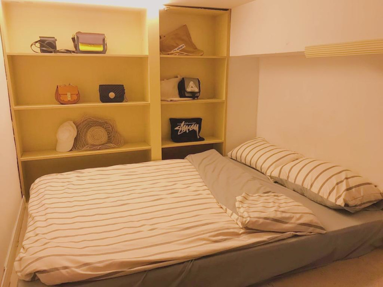1 большая двуспальная кровать и 1 футон