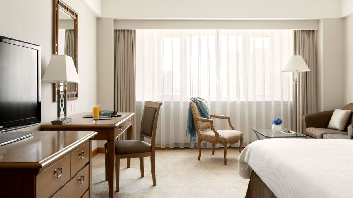 Номер находится на 13 или 14 этаже. В числе удобств — кондиционер, мини-бар, телевизор с плоским экраном и гостиный уголок с диваном. По прибытии гостям предоставляется бесплатная чаша с фруктами
