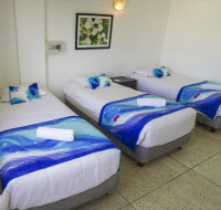 Четырехместный номер располагает кондиционером, кабельным телевидением, 2 односпальными и 1 двуспальной кроватями и собственной ванной комнатой