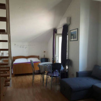 Номер-студио с кондиционером, террасой, 2 спальнями, полностью оборудованной кухней и ванной комнатой. Спальная зона находится в галерее наверху