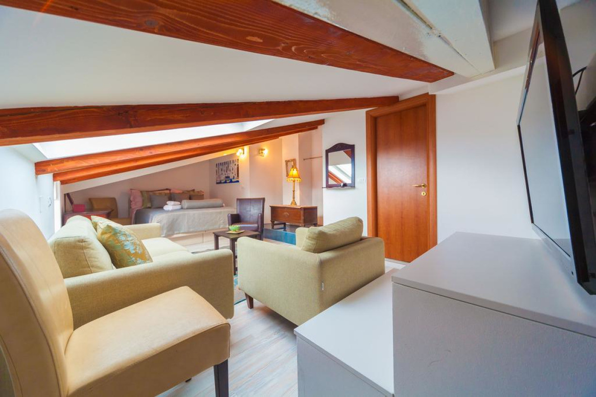 Апартаменты с кондиционером, плазменным телевизором и гостиным уголком с диваном-кроватью. Кроме того, к услугам гостей полностью оборудованная кухня с обеденной зоной и 2 ванные комнаты, по одной на каждом этаже. С балкона открывается вид на море