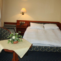 Номер с гостиной зоной оборудован телевизором, мини-баром и собственной ванной комнатой с душем