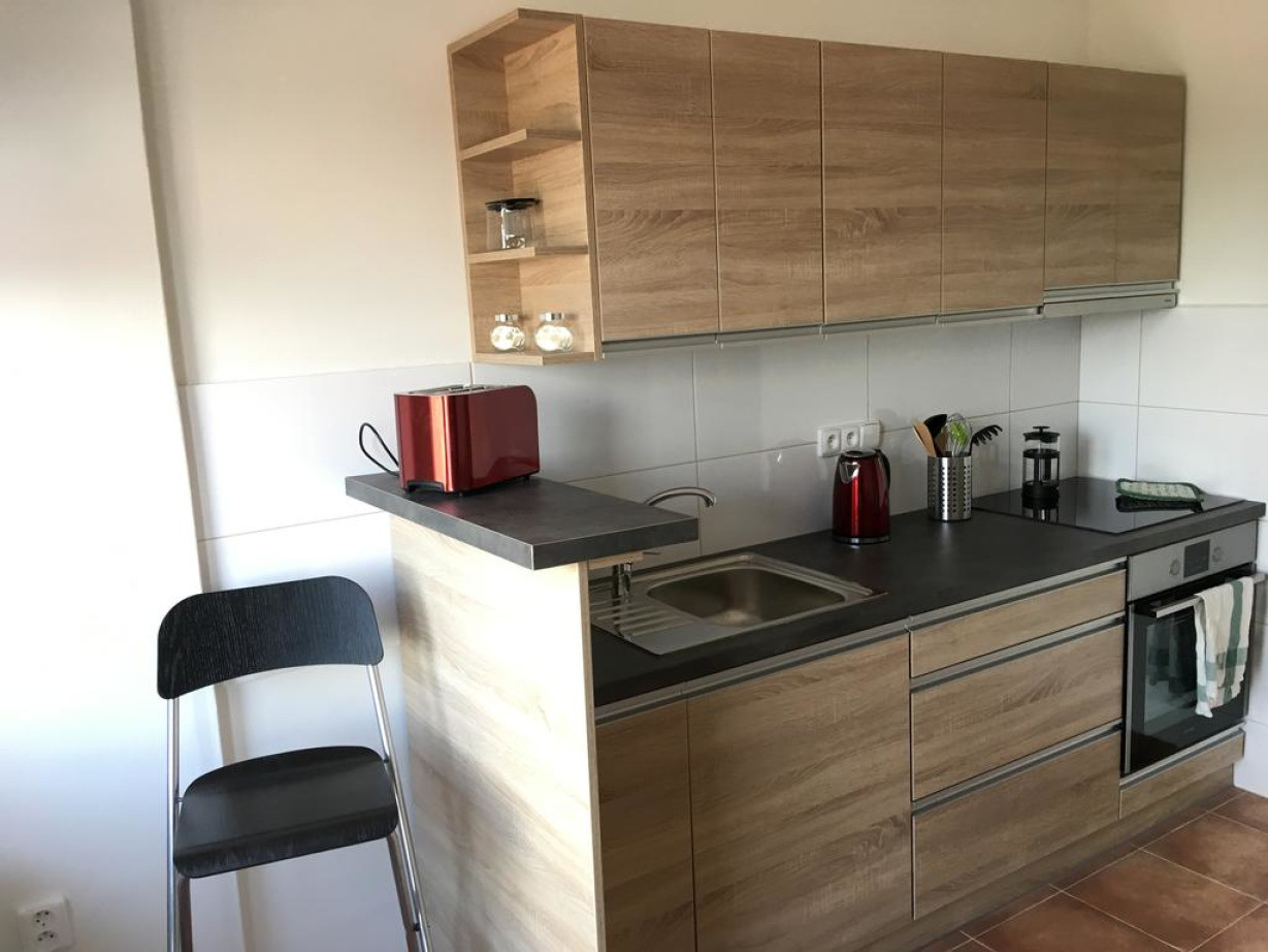 Апартаменты с кухней, духовкой и кухонными принадлежностями