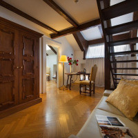 В качестве подарка гостям предоставляется бутылка игристого вина. Гостям предлагается размещение в просторном люксе с антикварной мебелью. Из окна открывается вид на реку Влтава или внутренний двор отеля. В числе прочих удобств спутниковое телевидение, мини-бар и ванная комната, отделанная мраморной плиткой. Люкс состоит из 2 уровней, соединенных лестницей