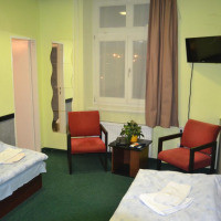 В трехместном номере есть гостиный уголок, телевизор с плоским экраном и спутниковыми каналами, телефон, а также собственная ванная комната с душем и бесплатными туалетно-косметическими принадлежностями
