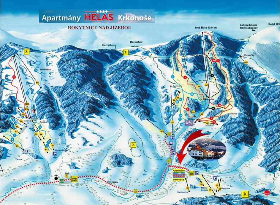 Апартаменты Helas - Konsoose расположены в городе Рокитнице-над-Йизероу, в 900 м от горнолыжного курорта Горни Домки. К услугам гостей принадлежности для барбекю, боулинг, ресторан и бар. На всей территории работает бесплатный Wi-Fi.Во всех апартаментах есть гостиная зона с телевизором с плоским экраном и DVD-плеером, а в некоторых — обеденная зона и/или балкон. В распоряжении гостей мини-кухня с микроволновой печью и собственная ванная комната с феном. Гостям предоставляются полотенца.В распоряжении гостей апартаментов Helas - Konsoose гидромассажная ванна, массажный кабинет и ресторан.В распоряжении гостей прямой доступ к лыжным склонам, лыжная школа, пункт продажи ски-пассов и прокат лыжного снаряжения. Гости могут взять напрокат велосипед. В окрестностях популярны лыжный спорт и верховая езда. В окрестностях можно заняться различными видами активного отдыха, в том числе велоспортом и рыбной ловлей. Горнолыжный подъемник Лыса гора находится в 1,4 км от апартаментов Helas - Konsoose. Расстояние до аэропорта Пардубице составляет 82 км.