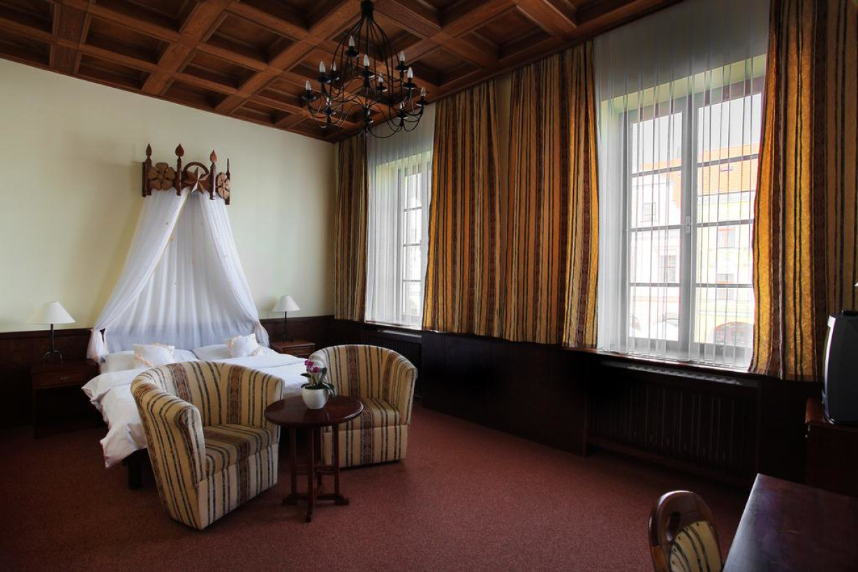 Стильно меблированный номер с 1 двуспальной или 2 односпальными кроватями, спутниковым телевидением, бесплатным Wi-Fi, сейфом и мини-баром. Все номера располагают собственной ванной комнатой с туалетом и ванной, а в некоторых также установлен душ. Из окон открывается вид на историческую площадь Тршебонь. Все номера имеют просторную планировку, а один из них оснащен балконом. Гостям бесплатно предоставляются банные халаты и тапочки