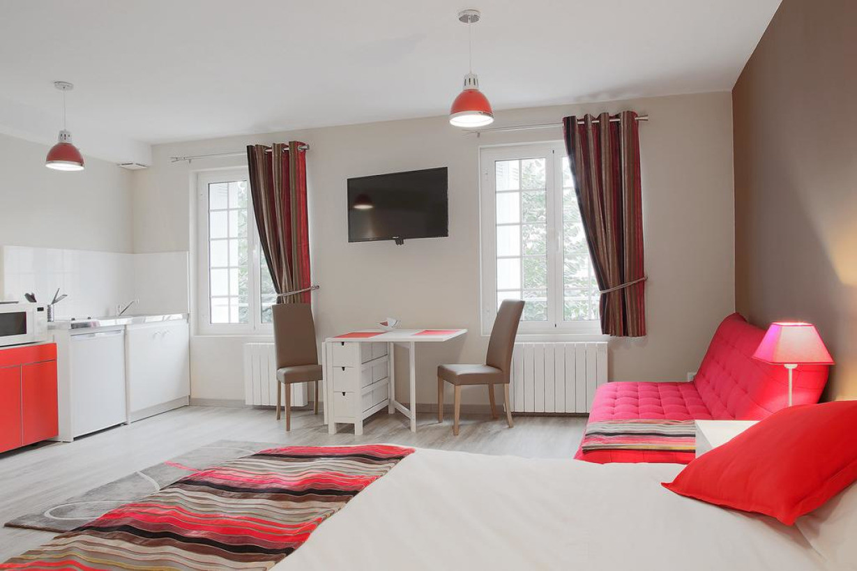 Chez Эмма и Истер находится в Периге. Поблизости работают различные рестораны, а расстояние до Бержерака составляет 42 км.В числе удобств всех апартаментов обеденная зона, гостиный уголок с телевизором с плоским экраном, а также мини-кухня с микроволновой печью, холодильником, кофемашиной и чайником. В собственной ванной комнате установлена ванна или душ. Гостям предоставляются полотенца и постельное белье.Брантом находится в 21 км от Chez Emma et Alister, а Сен-Совер - в 37 км. Расстояние до аэропорта Бержерак-Руманьер составляет 43 км. Всего в 100 м от апартаментов обустроена парковка.