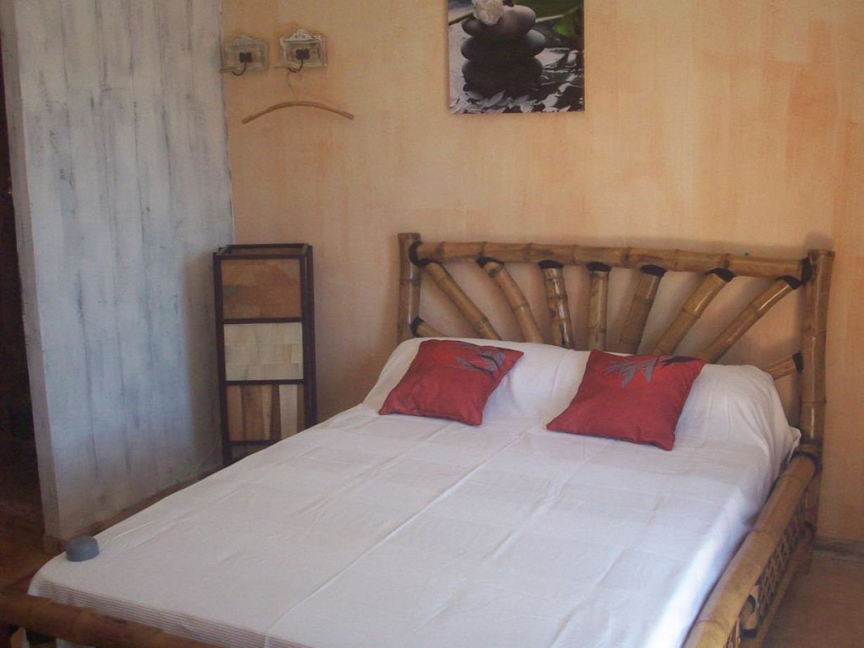 Номер отделан бамбуком и располагает собственной ванной комнатой и меблированной террасой