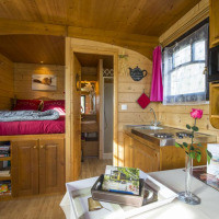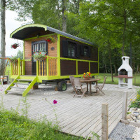 Традиционный деревянный дом на колесах Roulotte des Greppes с бесплатным Wi-Fi расположен в поселке Блое. К услугам гостей собственная терраса и принадлежности для барбекю.К услугам гостей телевизор, мини-кухня, обеденный стол и собственная ванная комната…