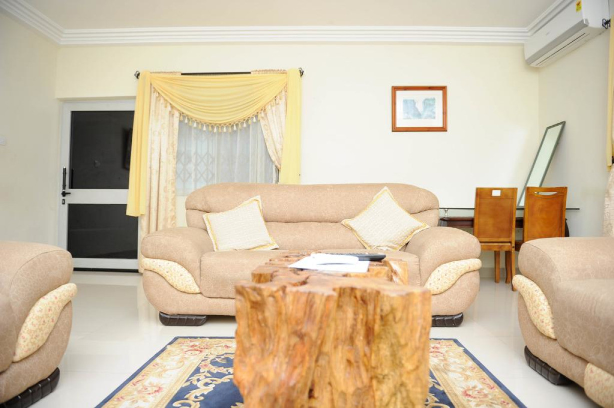 Семейный номер с гостиным уголком и принадлежностями для чая/кофе. Пол выложен плиткой/мрамором