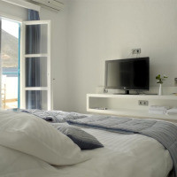 Номер оформлен в строгом кикладском стиле. Во всех номерах имеется балкон с великолепным видом на море и закат