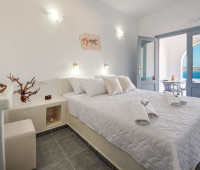 Четырехместный номер со спутниковым телевидением и балконом с видом на Эгейское море и вулкан