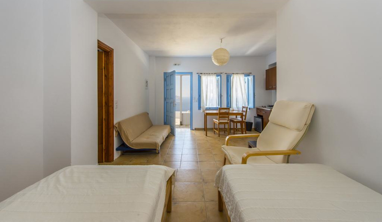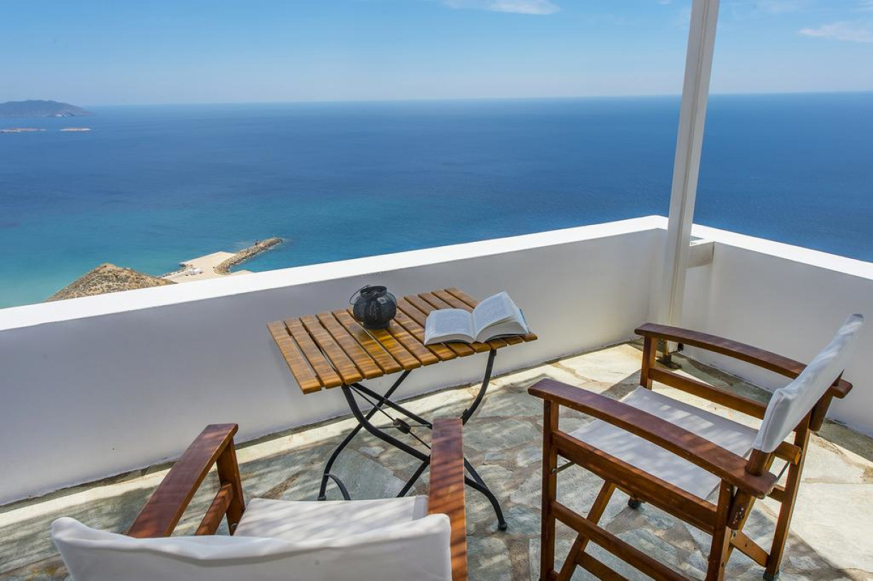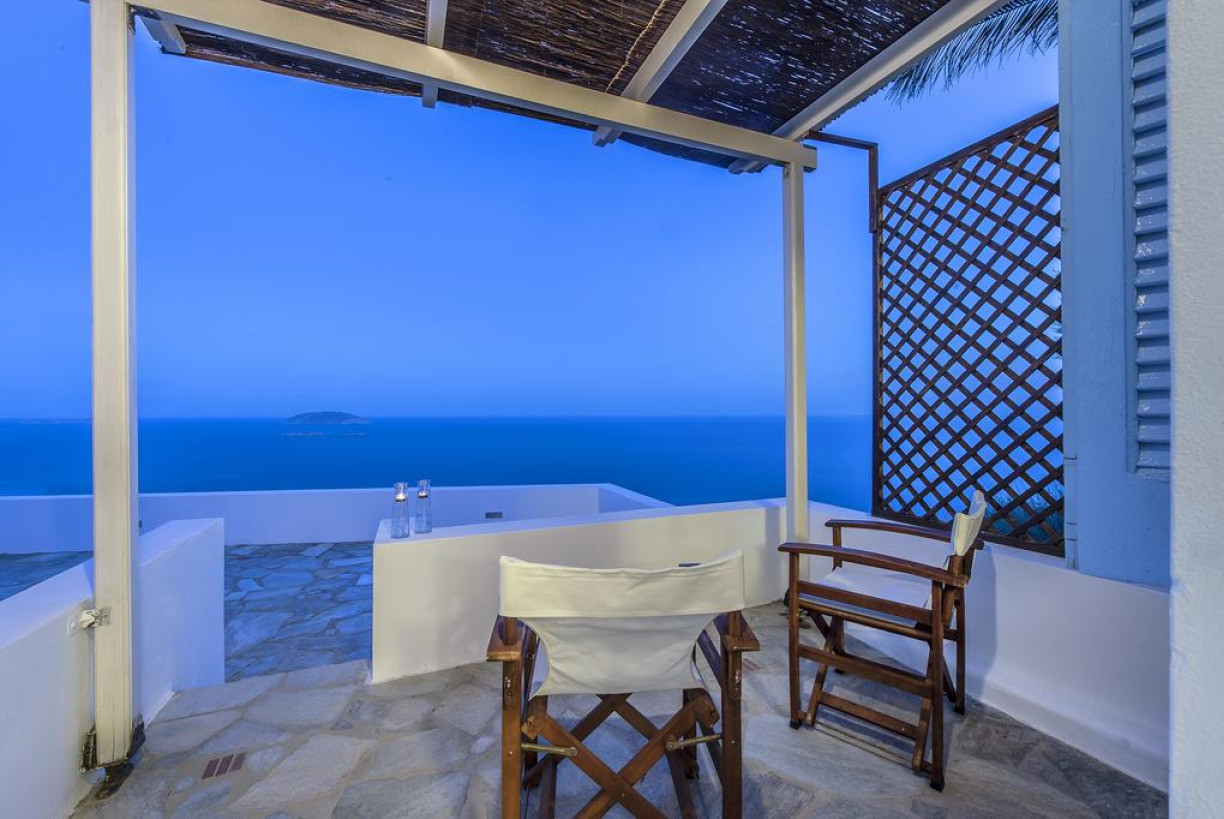 Номер-студио, расположенный на 1 этаже, с панорамным видом на Эгейское море. В числе удобств мини-кухня, меблированный балкон и бесплатный Wi-Fi