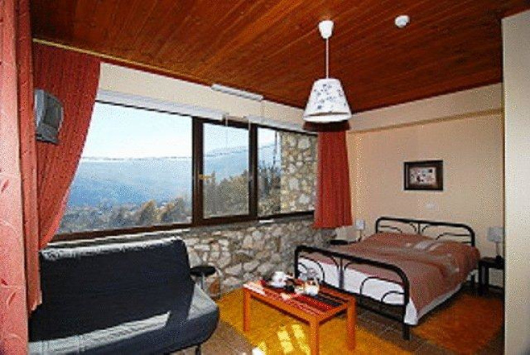 Номер-студио, оформленный в традиционном стиле, с камином, элементами каменной кладки и деревянным потолком. В распоряжении гостей балкон, диван и телевизор со спутниковыми каналами