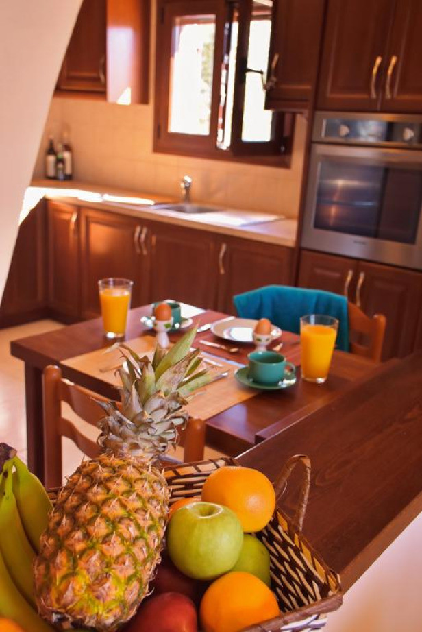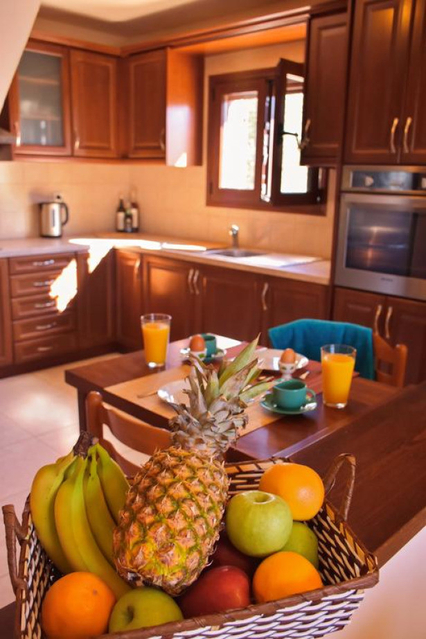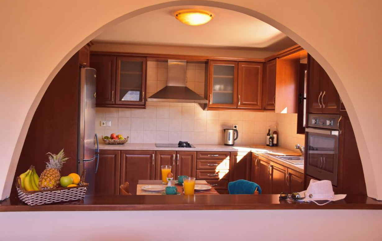 На вилле имеются электрический чайник и духовка. Из дома можно выйти в патио