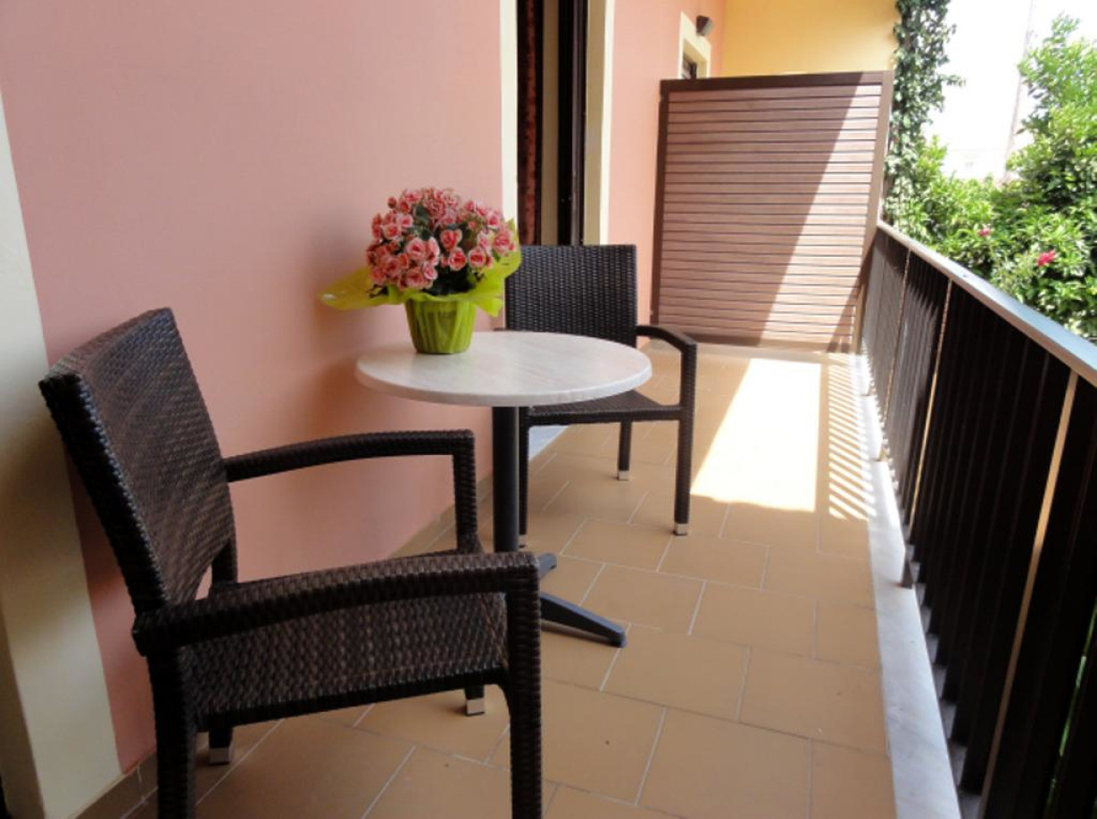 Просторный номер-студио с кондиционером и хорошо оборудованной кухней с холодильником, электрическим чайником и плитой. С меблированного балкона открывается вид на сад или бассейн