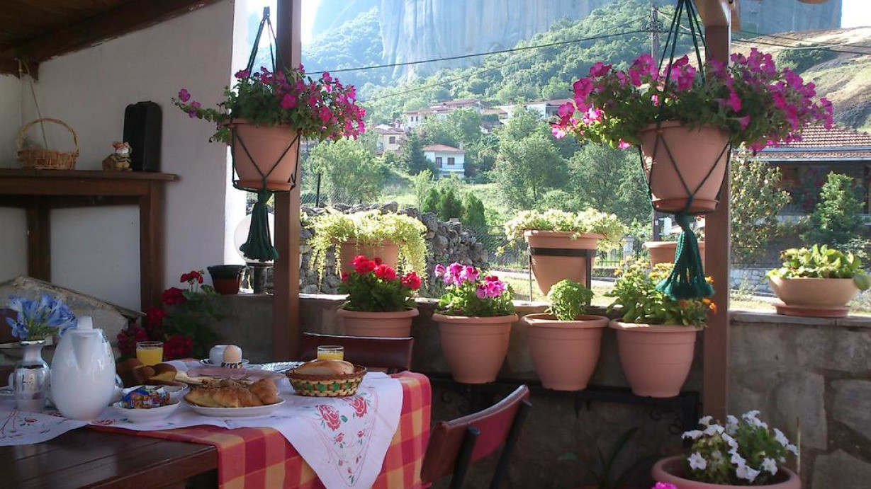Этот номер оснащен кондиционером, телевизором и феном, а из окон открывается вид на скалы Метеоры