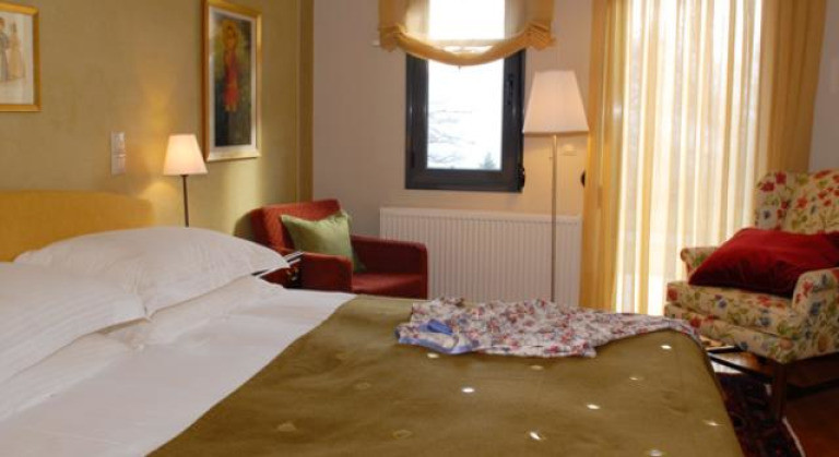 Номер, оформленный в теплых тонах, с полом из древесины каштана и постельным бельем марки Cocomat. С балкона номера открывается вид на коринфские ели. В распоряжении гостей ЖК-телевизор, DVD-плеер и фирменные туалетно-косметические принадлежности. Обратите внимание, в номерах данной категории не предусмотрена установка дополнительной кровати