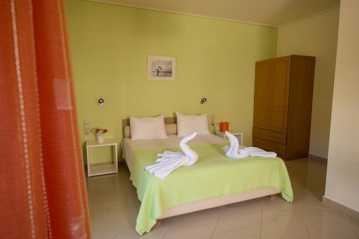 Кондиционированные апартаменты располагают бесплатным Wi-Fi, телевизором с плоским экраном и балконом, с которого открывается вид на сад и горы. Кухня оснащена электрическим чайником, микроволновой печью и кофемашиной. Ванная комната оборудована ванной или душем