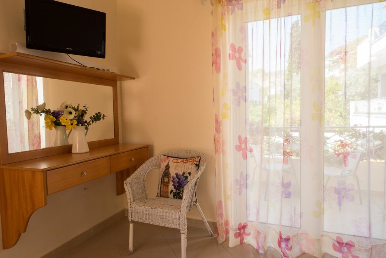 Кондиционированный номер-студио располагает бесплатным Wi-Fi, телевизором с плоским экраном и балконом, с которого открывается вид на сад и горы. Кухня оснащена электрическим чайником, микроволновой печью и кофемашиной. Ванная комната оборудована ванной или душем