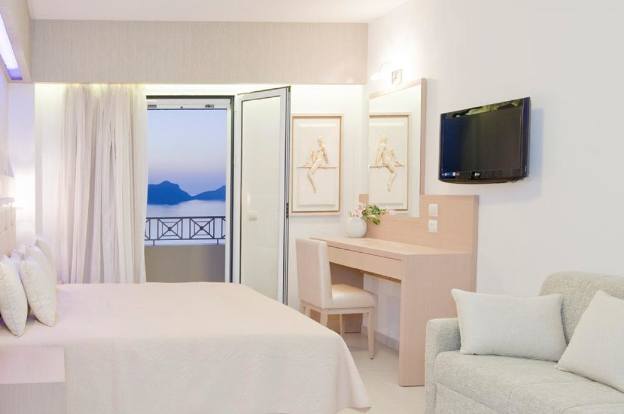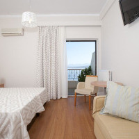 Светлый номер-студио с кондиционером, меблированным балконом с видом на залив Наварино и кроватью с матрасом Cocomat. К услугам гостей мини-кухня, холодильник, телевизор с плоским экраном и сейф. Современная ванная комната со стеклянной душевой кабиной укомплектована феном и бесплатными туалетно-косметическими принадлежностями