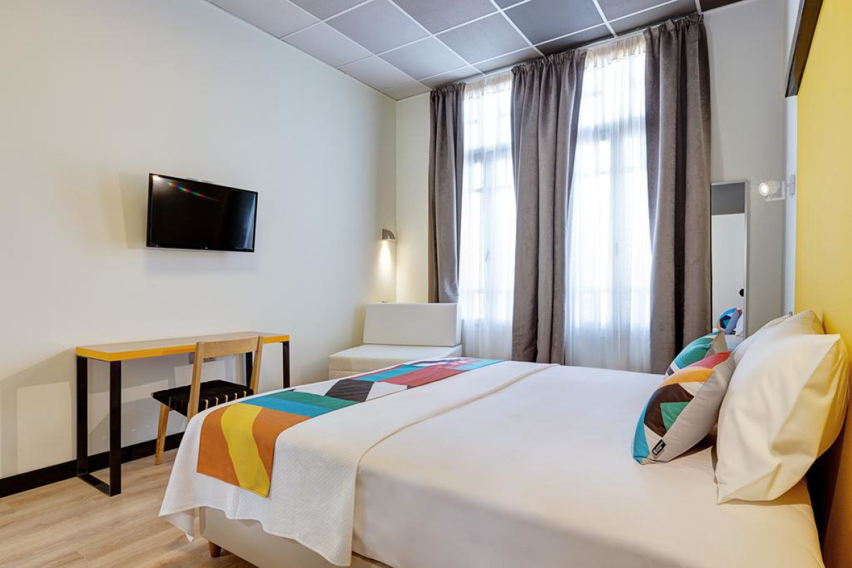 Номер в урбанистическом стиле с телевизором с 32-дюймовым экраном и светодиодной подсветкой, мини-холодильником и бесплатным Wi-Fi. В оформлении номера использована декоративная подсветка. Из окон видно фонтан Лададики. Предоставляются туалетно-косметические принадлежности с маркировкой Fair Trade. В числе удобств большинства номеров — балконы. Пожалуйста, обратите внимание, что предоставление номера с балконом осуществляется по запросу и при наличии возможности. Установка дополнительной кровати не предусмотрена