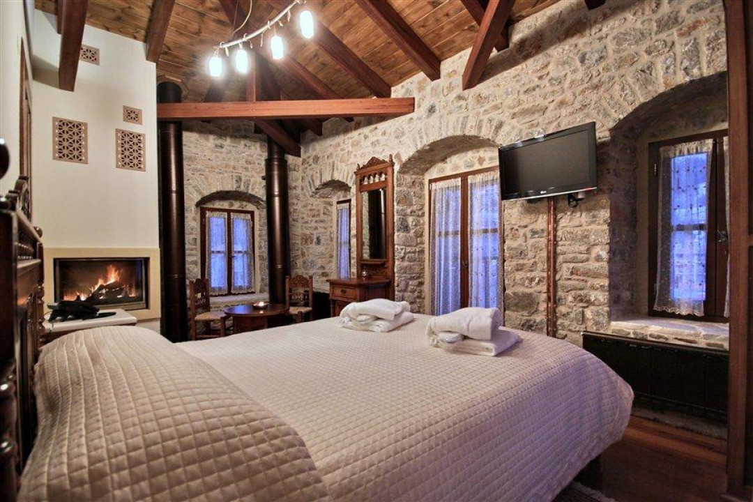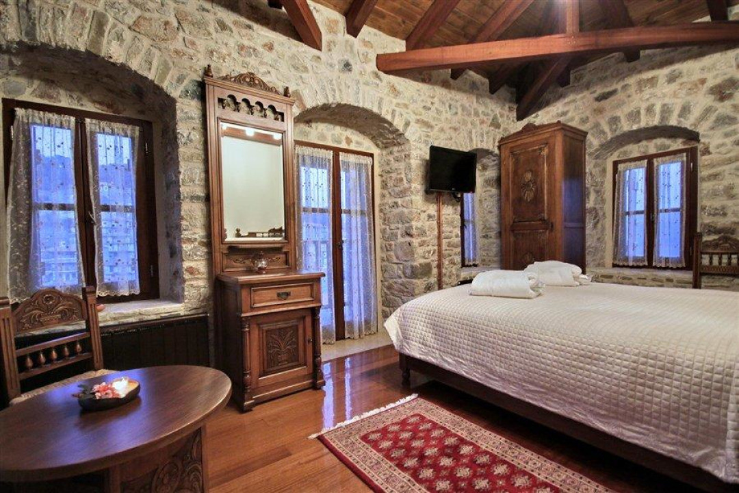 Двухместный номер с 1 кроватью, балконом и телевизором с плоским экраном. Из окон открывается вид на горы